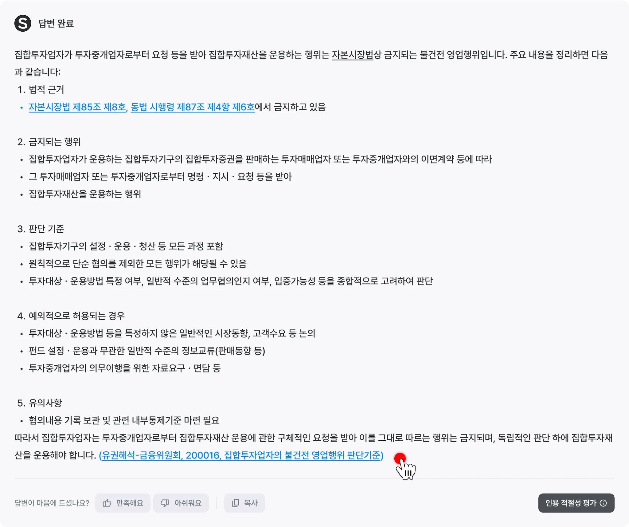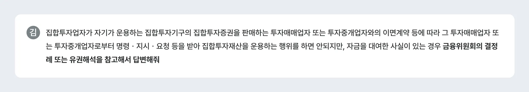 답변에 인용된 ‘금융위원회 유권해석’ 클릭하여 전문 읽기