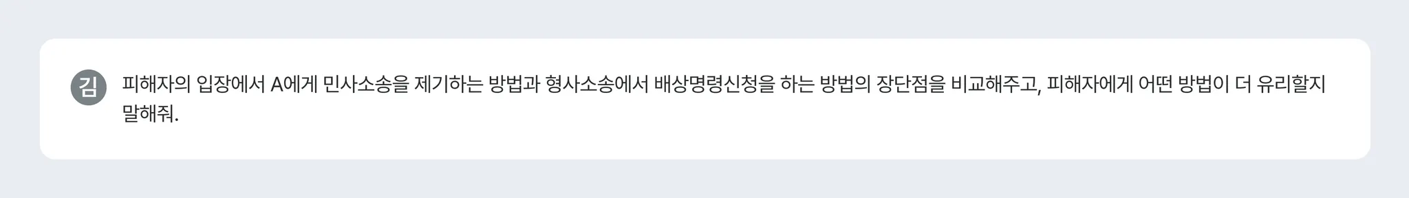 “의뢰인 상담부터 고소장 초안 작성, 사건이 진행되는 모든 과정에 슈퍼로이어를 활용하고 있어요. 리서치는 물론이고 서면 초안 작성부터 의뢰인이 처한 상황에 맞는 전략을 세우는데도 큰 도움을 받고 있어 여러 업무에 슈퍼로이어를 활용하고 있습니다.”