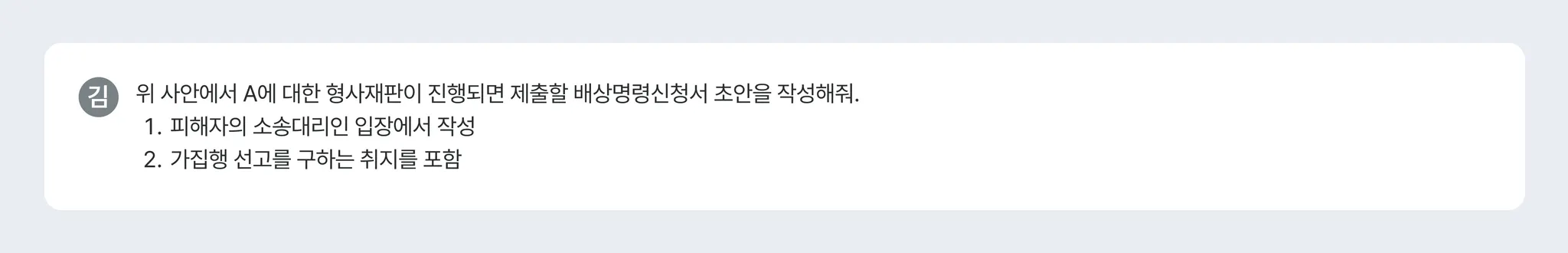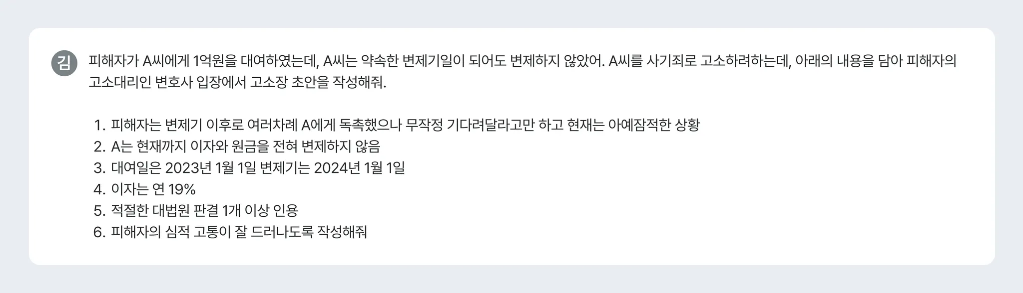 의뢰인의 피해 상황에 맞춰 고소장 초안 작성 요청