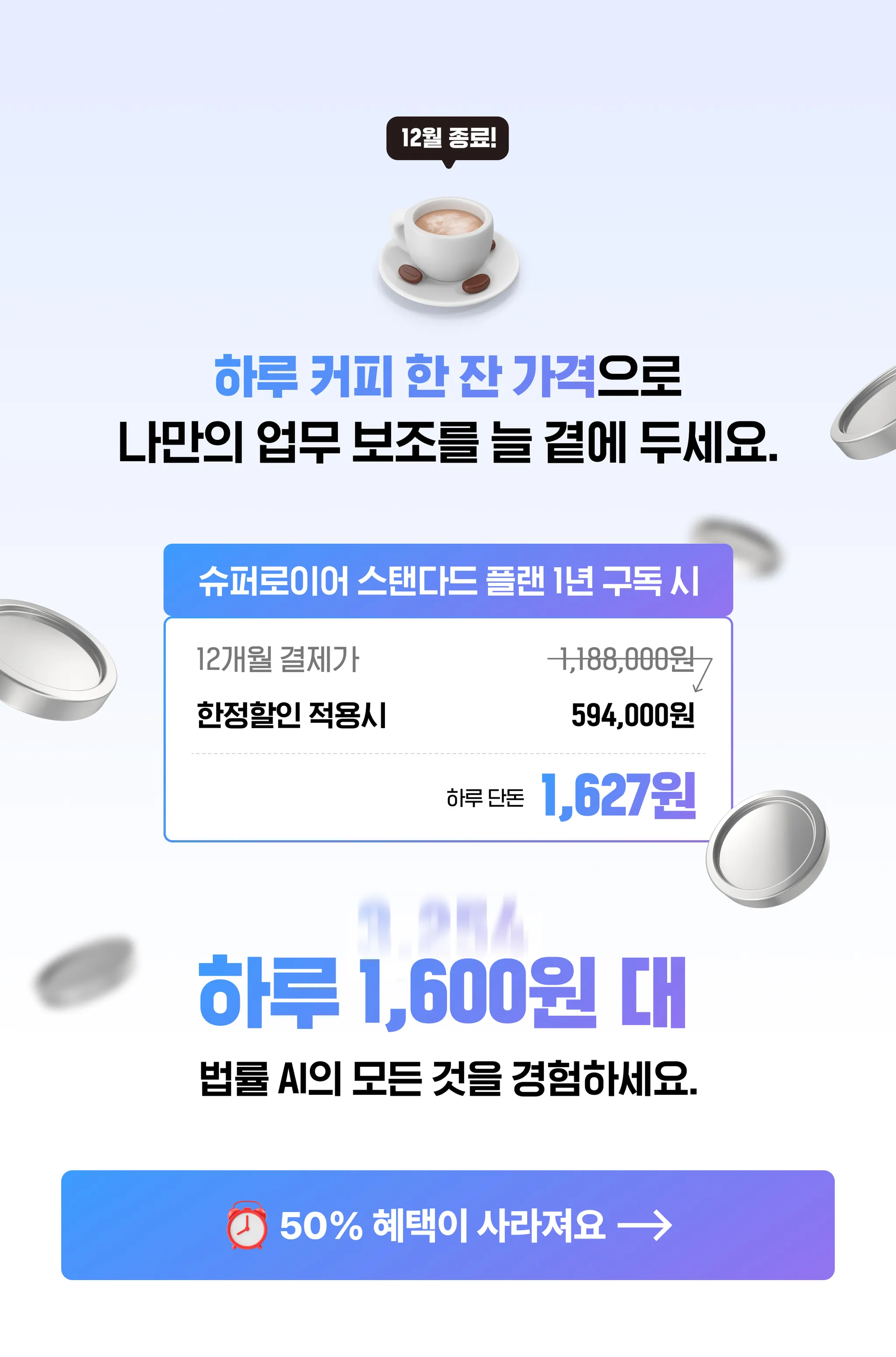 지금 플랜을 연간 결제하고, 50% 할인된 가격으로 슈퍼로이어를 업무에 매일 이용해 보세요.