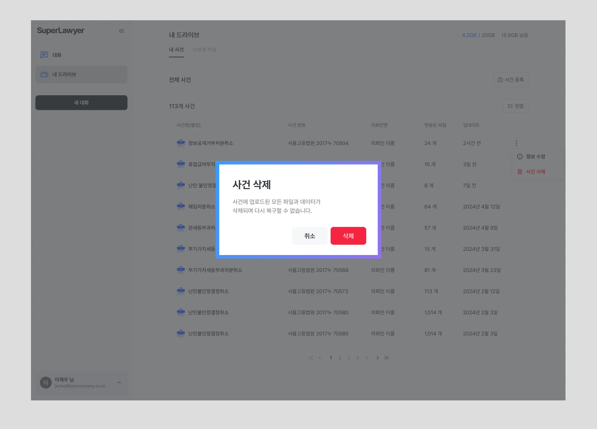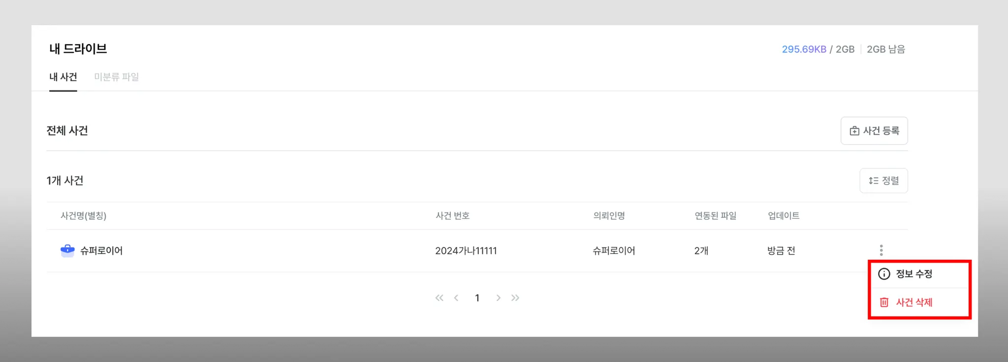 내 드라이브에 등록된 사건을 직접 삭제할 수 있는 기능이 추가되었습니다.