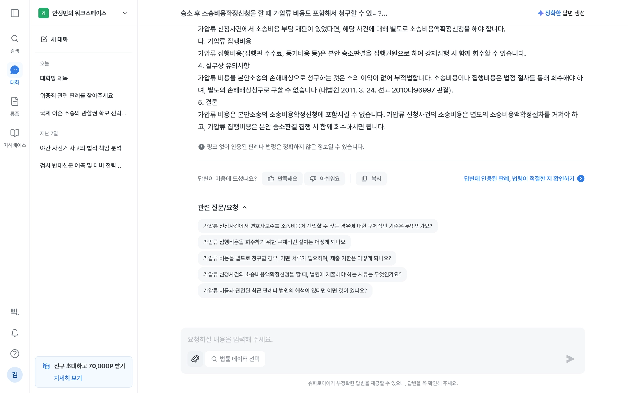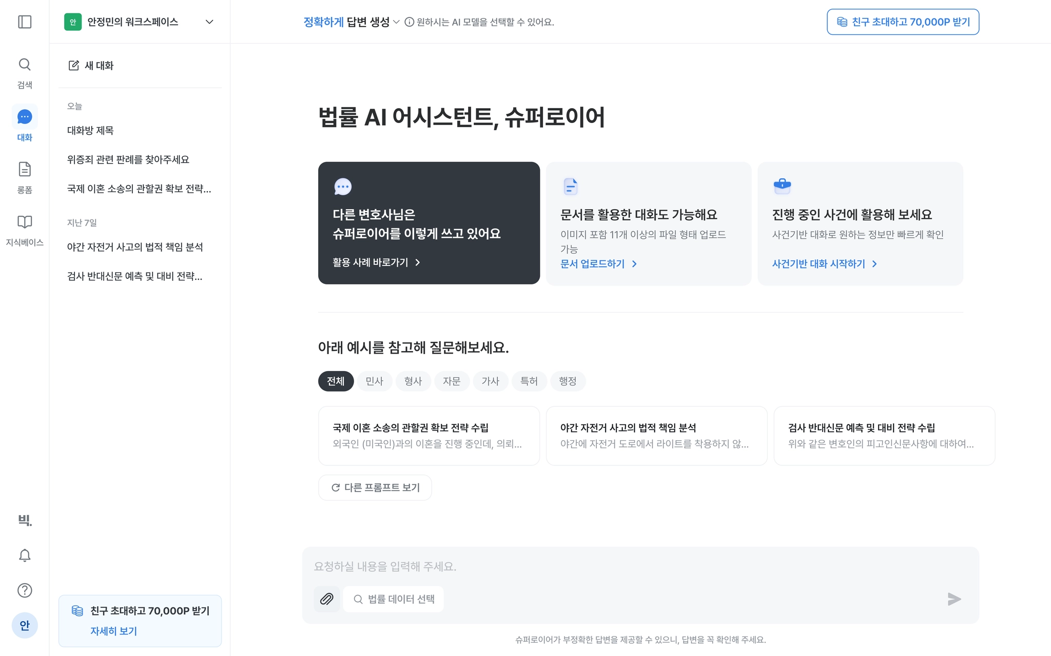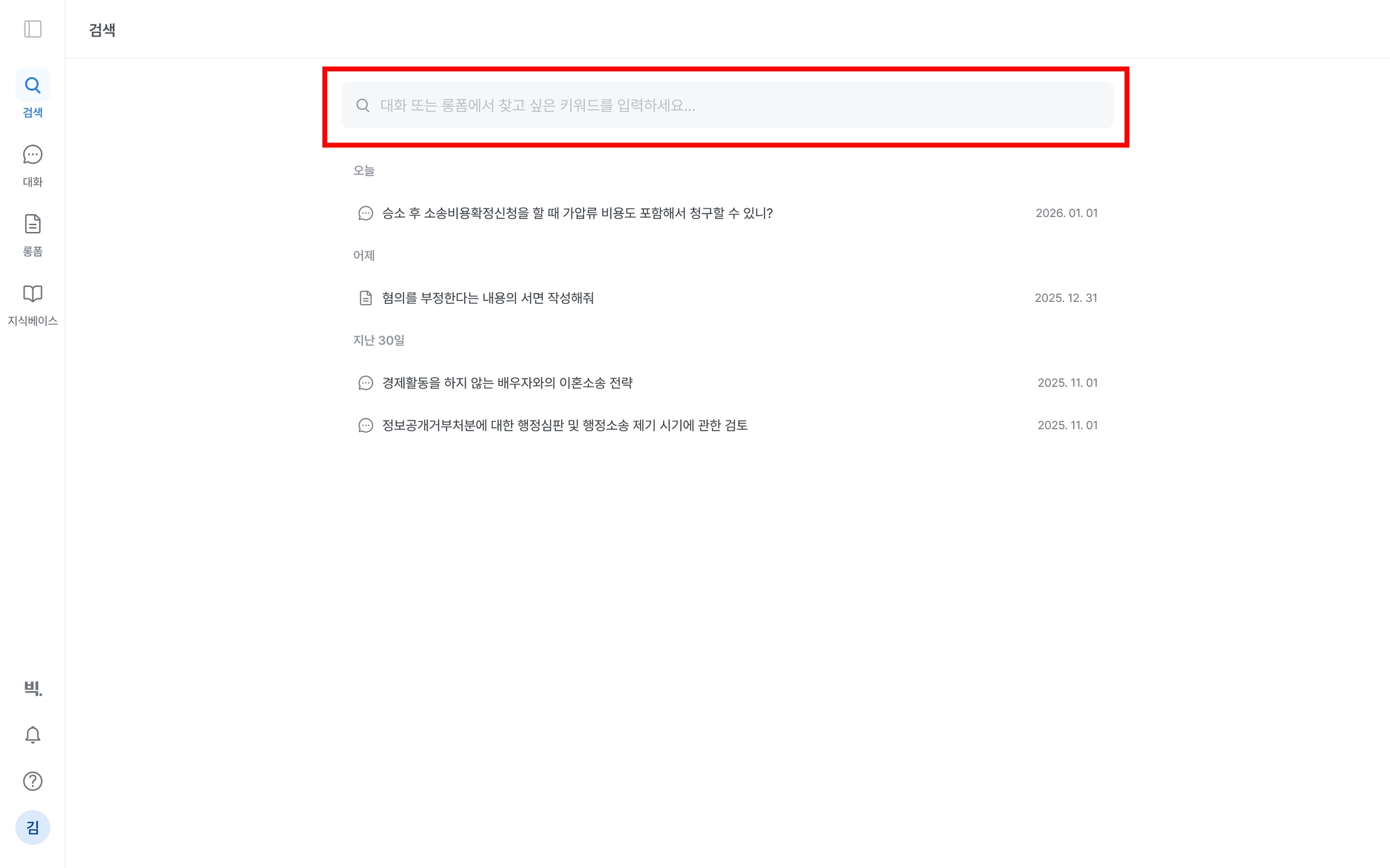 검색 기능으로 그동안 이용했던 대화 내역과 롱폼 내역을 검색할 수 있습니다.
