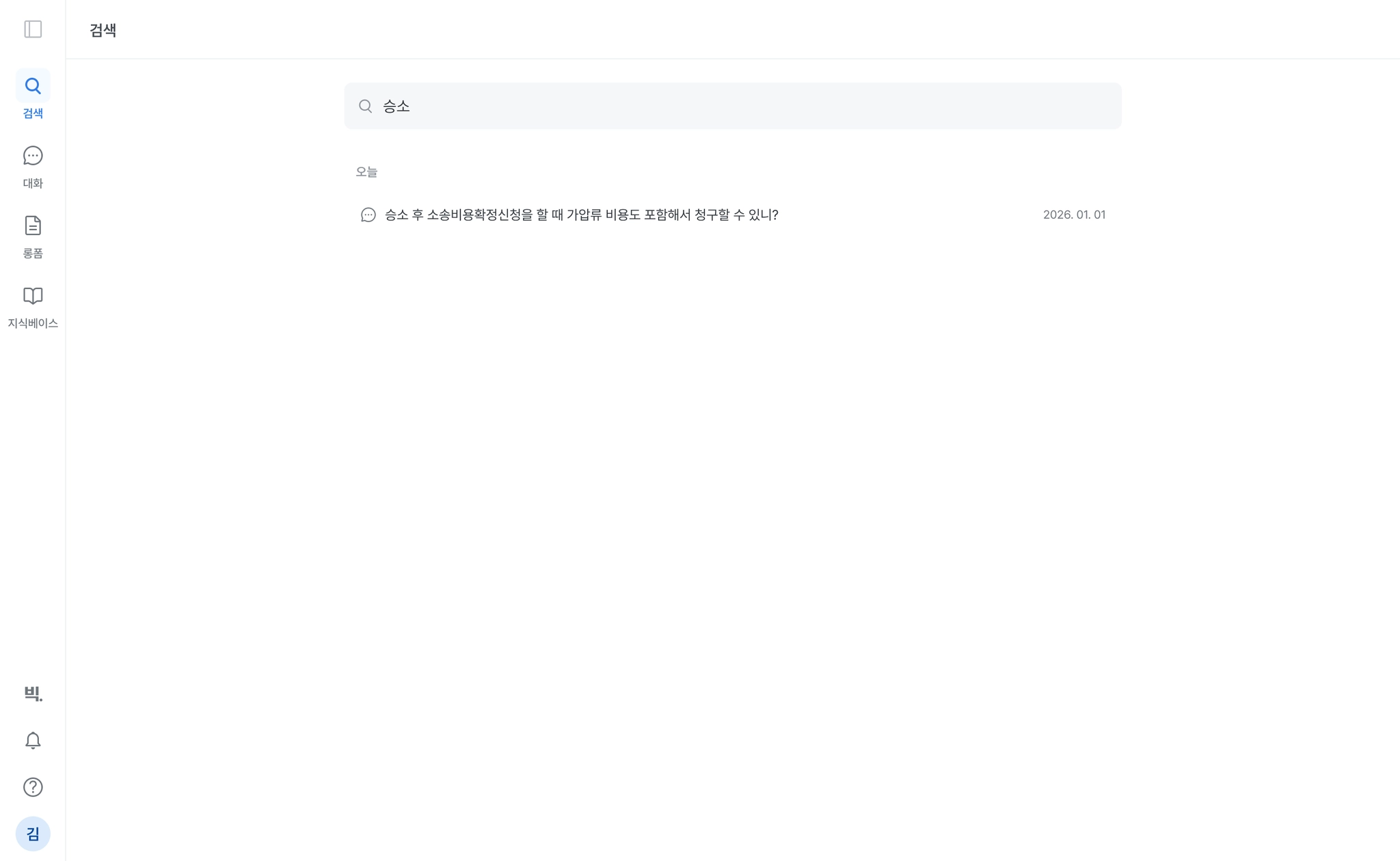 검색 결과를 클릭하면 해당 대화 또는 롱폼 내역으로 이동합니다.