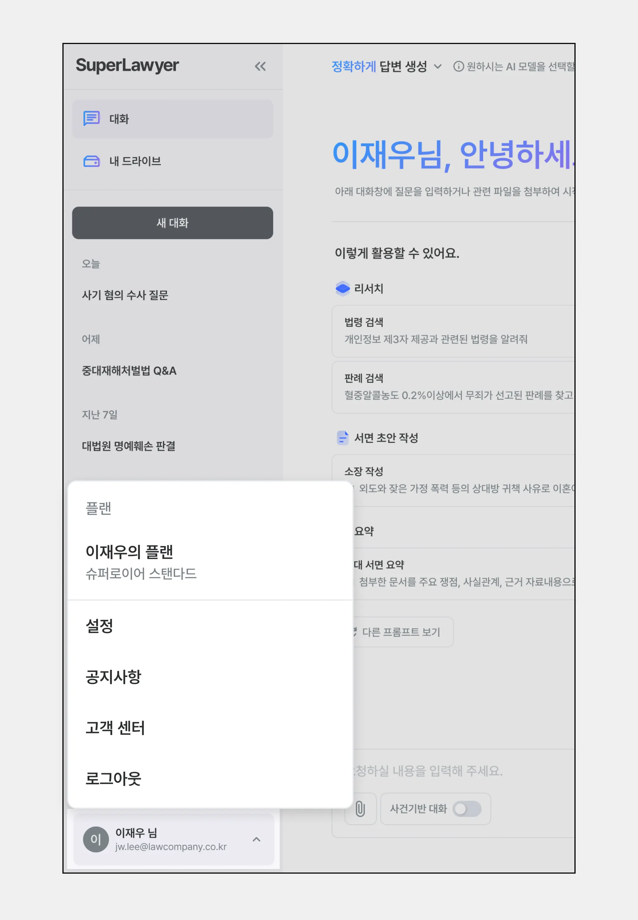 설정 화면으로 이동해 계정 정보를 확인하고 알림 설정을 변경할 수 있어요.