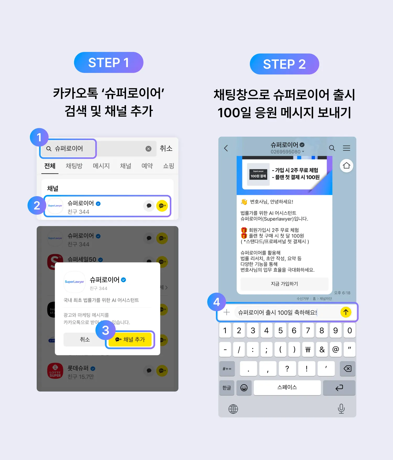 STEP 1. 카카오톡 ‘슈퍼로이어’ 검색 및 채널 추가